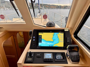 The boat feels incredibly stiff and sturdy as a result of these choices. It has a predictable, settled way through the water. It was noticeable the moment we turned into Puget Sound chop with a northerly pumping in the mid-to-high teens.