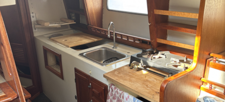 1973 ’41 Coronado Ketch – Spacious and loved. New Polycarbonate Dodger Elements for Center Cockpit. Heavy duty fiberglass hull. New hull paint, keel maintenance, and zincs on 10-25. Dinghy and davits. Recently Rebuilt Perkins Diesel Engine- 164 hrs. New Spinnaker, roller furling Hasse and Petrich Genoa, Medium and Storm Jib, Main and Mizzen Sails in great condition. 2 8D battery bank.