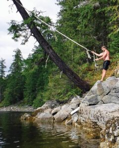 Once you are north of Puget Sound, and especially north of Nanaimo, there are few facilities on shore. This makes the Salish Sea a cruising ground where self-sufficiency is prized and often required. You need to be your own mechanic and chef, as reprovisioning and repairs can be challenging. If there isn’t a trail nearby, getting out in the kayak or dinghy is the best way to explore the shoreline. Though even in the most remote areas, there can be signs of human presence—sometimes you find an overhanging tree with a rope swing, or ancient petroglyphs and settlements of the Indigenous peoples who have lived along these coasts since time immemorial.