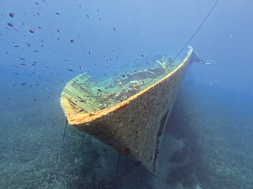 We didn’t see much underwater wildlife in the Med. As with the scenery above the water, the most interesting finds are usually human artifacts, such as shipwrecks. We spotted a few small groupers among the rocks and speared some invasive lionfish in Turkey.