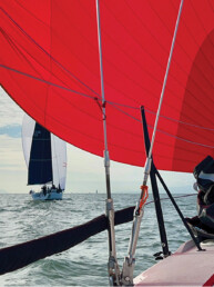 Eight knots? Couldn’t be. But that is precisely what the GPS indicated. Under my hand Nais had never before moved so sprightly, towing a dinghy no less. But there it was: close hauled, rails down, foam and spray slapping wildly across the bow, Nais raced southward like an old trail-horse storming towards home and a well-deserved oat bag. A quick tack to port at Jones Island and it was wing-on-wing nearly all the way to the entrance to Fisherman’s Bay. A brilliant autumn sun shone translucent through the sails.