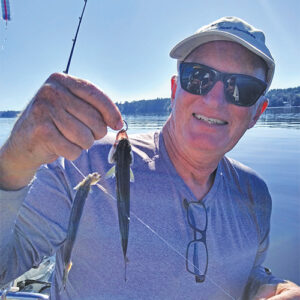 Then we moved our homeport to Fair Harbor Marina in Grapeview on Case Inlet and my fishing interest needle shifted. I met a neighbor right away who stopped by because he had noticed Sea Lab on the trailer at our house and wanted to know if I liked fishing. His name was Mark and his next question was, “You want to go out right now?” I said sure, and we met at his house down the street in a half-hour and dinghied out to his 17-foot fishing boat tied to the mooring ball in front of his place. We motored off into Pickering Passage then out into Case Inlet. It turns out he was a retired fisheries biologist whose absolute favorite activity is fishing, and he would be happy to teach me how to go about it. How lucky is that?