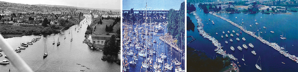 During the 1980s, the Seattle Yacht Club partnered with the UW and Windermere Real Estate to transform the Montlake Cut and Portage Bay into the festive community gathering that Opening Day is now. Some say that to this day, the parade continues to be sanctioned by a bald eagle flying overhead; participants and spectators, old and young, watch to see the bird soaring above the Cut.