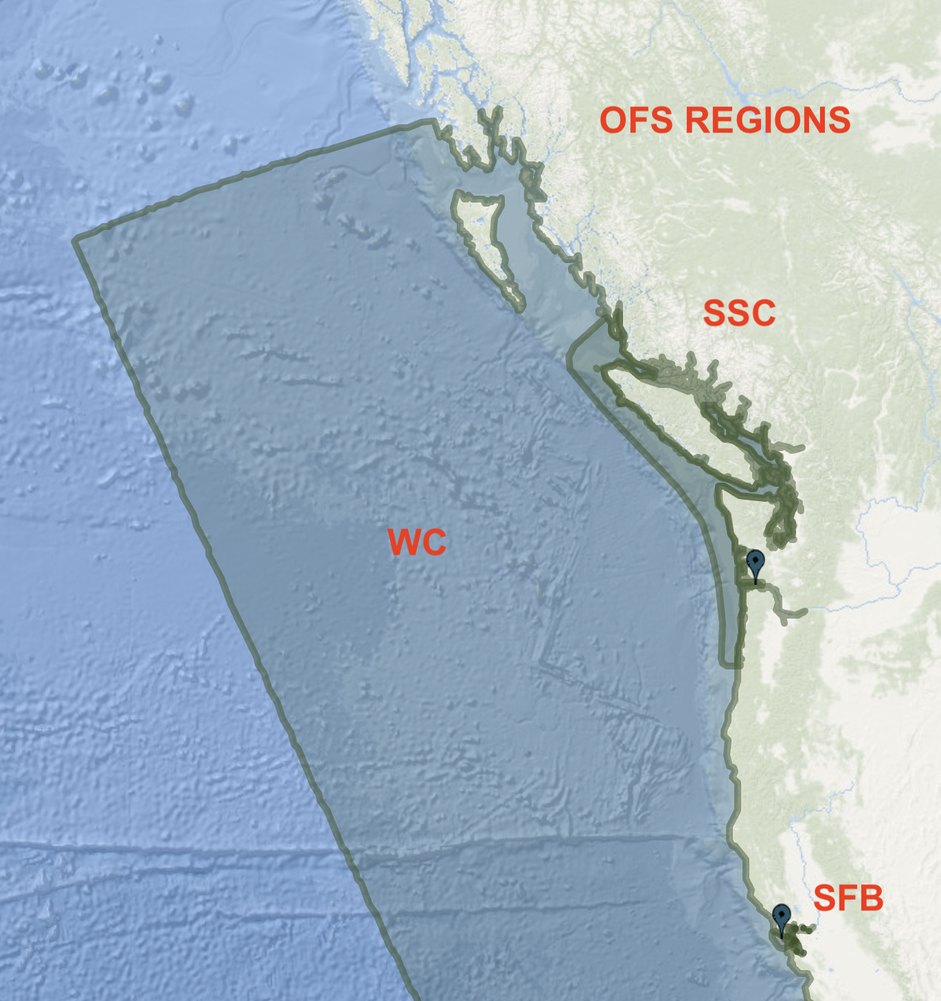 Below are the regions West Coast and Pacific Northwest regions covered by the OFS. The workhorse is the Salish Sea and Columbia River (SSC-OFS). The WC data along route to Ketchikan (north of the SSC limit) is not as precise, but should supplement the US and Canadian harmonic predictions.