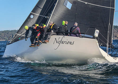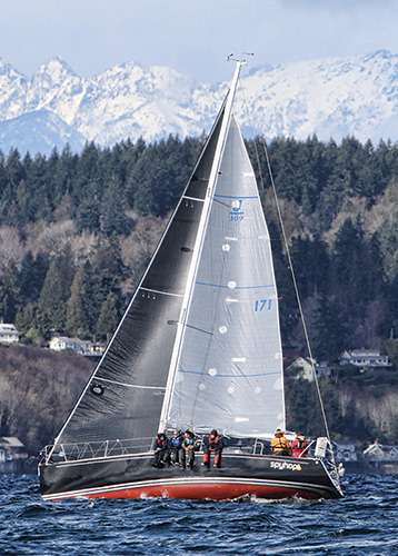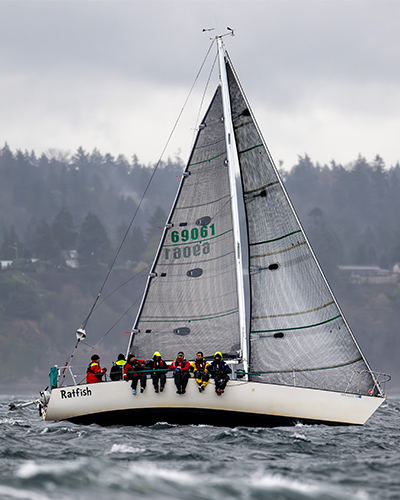 How do we select these boats? The qualifying races for our Top 25 offer a good representation of keelboat racing in the Pacific Northwest, and include a mix of distance and around-the-buoy races, single-race events, and multi-race regattas. Our scoring system is on a percentage basis, depending on the size of the class: 0% (did not finish) to 100% (first in class), where the event score = (Finishers – Place) / (Finishers – 1). Overall scores are an average of a boat’s best five finishes. There is no minimum number of races required to qualify. Multi-race events (like the Southern Sound Series) are scored as single events. Ties go to the boat with the larger average fleet size.