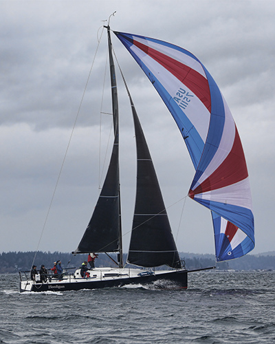 This year’s #1 boat, J/105 Moose Unknown, is skippered by John Aitchison and represents Corinthian Yacht Club of Seattle and Sloop Tavern Yacht Club. This savvy crew usually sails in a highly competitive one-design class. It’s never easy to take a win, let alone many of them. But after three straight years in our top five, Moose Unknown is at the pinnacle! They took more wins than we can count in our scoring system, a truly remarkable accomplishment! Bravo Moose crew, and congratulations!